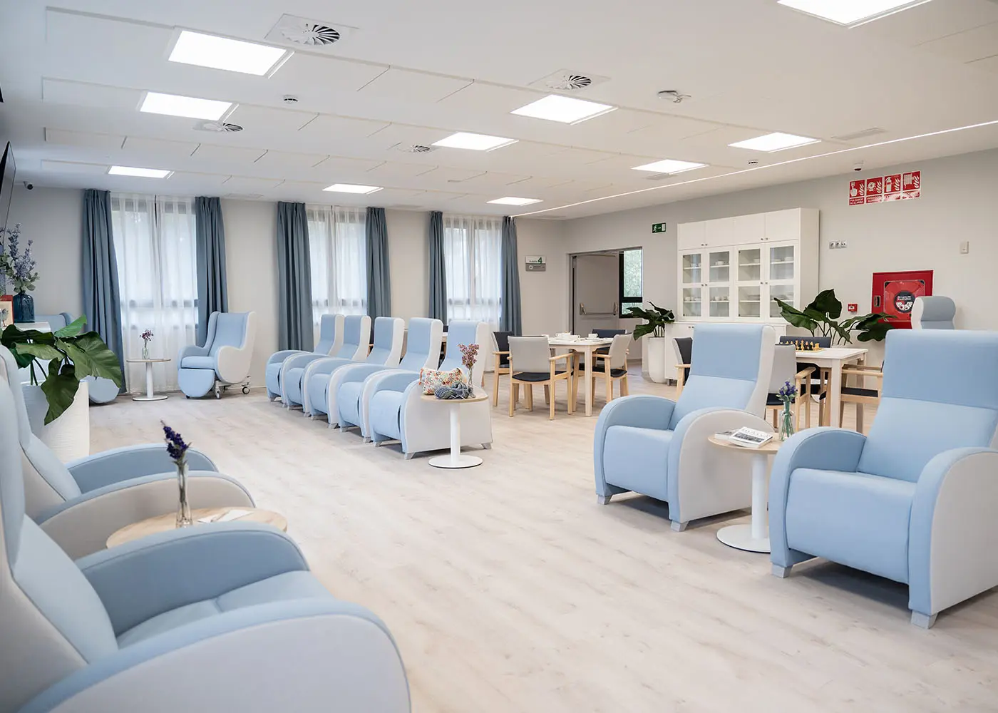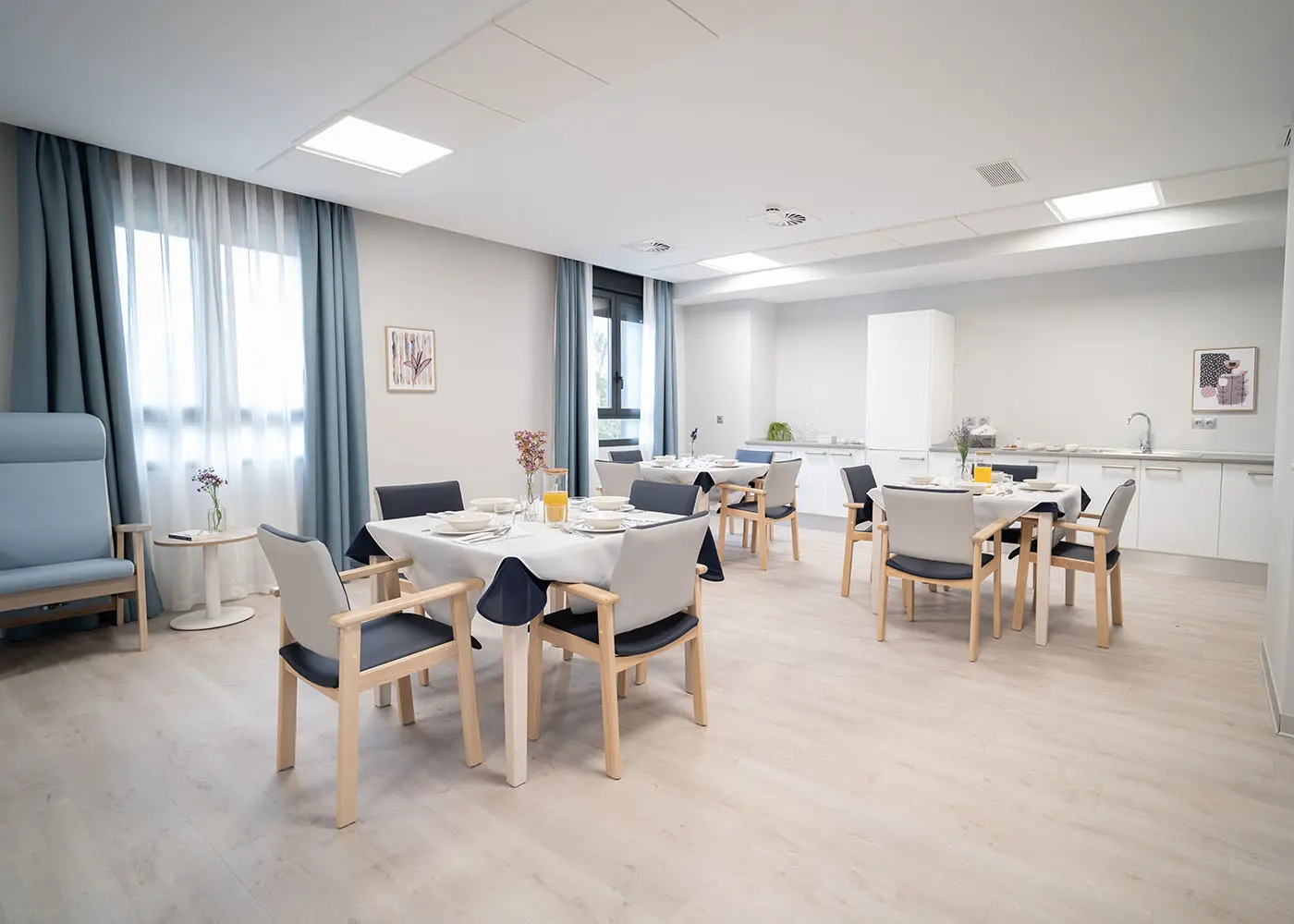 En la Primera Planta, se encuentran habitaciones y áreas de día con comedor y salón social. En esta planta se ubican además los servicios de peluquería y podología.