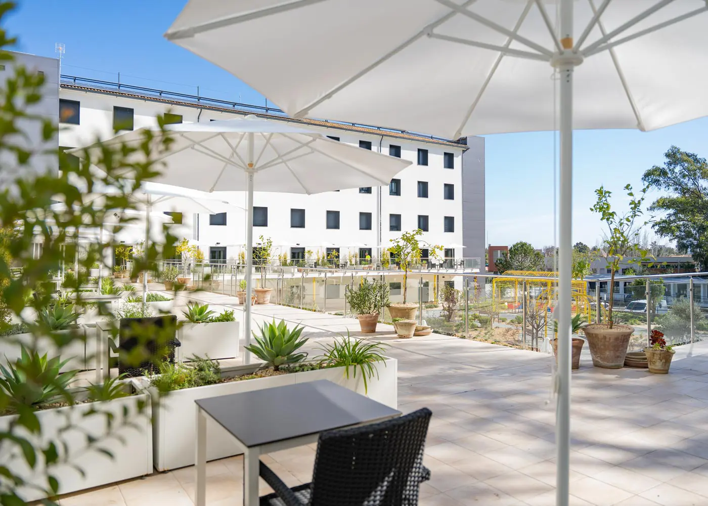 El complejo se distribuye en dos edificios independientes (el residencial y el de oficinas) y cuenta con una superficie de más de 1.300 m² de jardín. Este espacio natural terapéutico incluye un huerto ecológico, aula de la naturaleza, cenador, rosaleda y terraza, permitiendo a los residentes y familiares disfrutar del aire libre en el entorno del Parque Moret.
