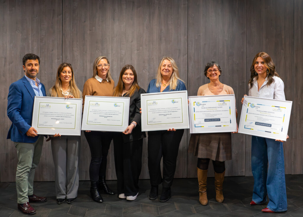 La Confederación Española de Organizaciones de Personas Mayores (CEOMA) ha otorgado a Emera Móstoles y Emera Méndez Álvaro la acreditación de «Centros Amigables con las personas con Demencia», respectivamente en diciembre 2025 y febrero 2026. Con ocasión de una reunión de trabajo con todas las direcciones de los centros Emera en Madrid, el 25 de febrero de 2026, se ha procedido a la entrega oficial de las acreditaciones de la mano de Javier Romero Reina, Director General de Emera España, Jorge Delgado Martín, Director de Operaciones, y Ana María García González, Directora Técnico-Asistencial y Calidad.