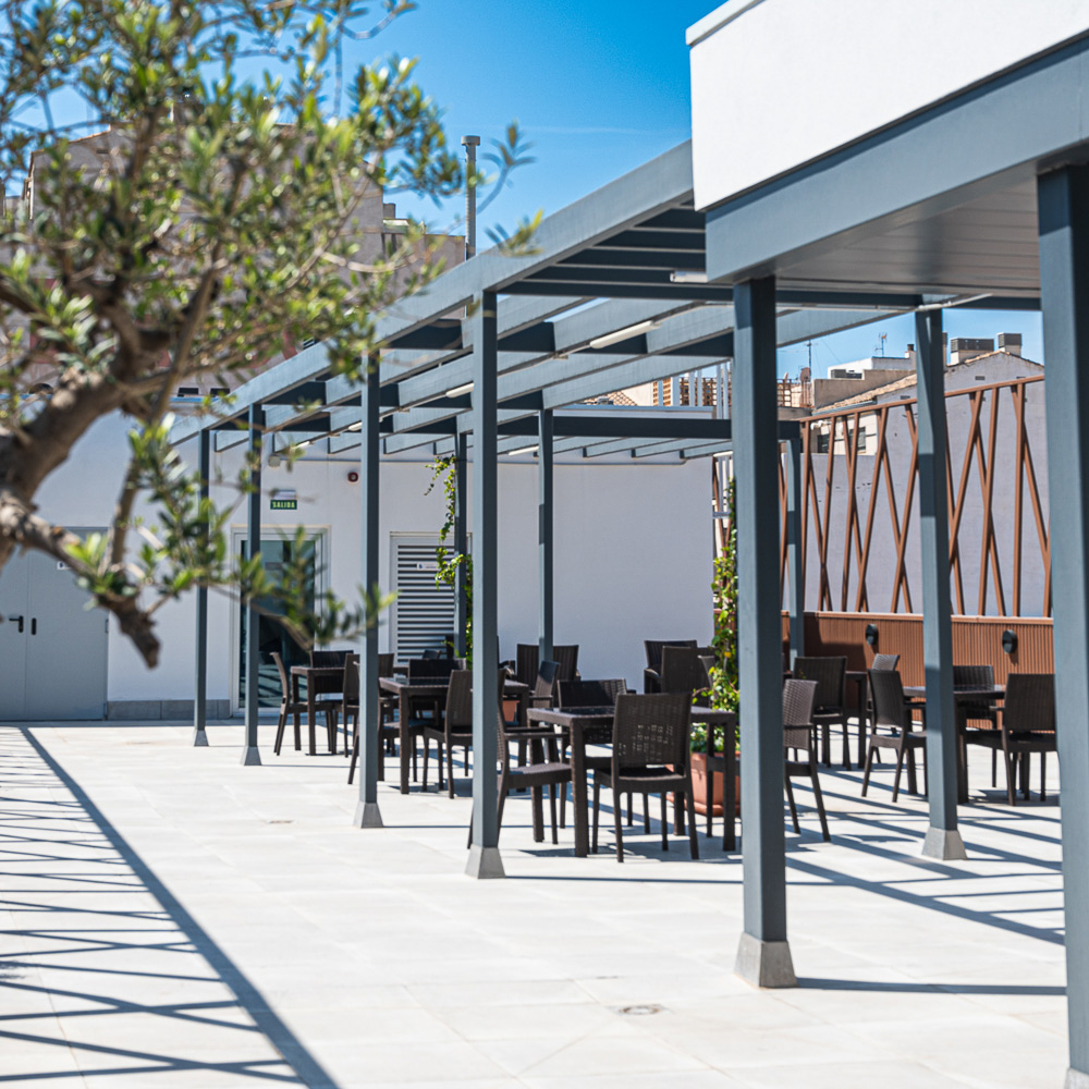 La residencia de mayores Emera Castellón está construida en 4 plantas de altura que incluye una planta baja y un semisótano. Cuenta con una terraza ajardinada, un espacio para descansar y disfrutar de la lectura y de conversaciones al aire libre para uso y disfrute de sus residentes y familiares.